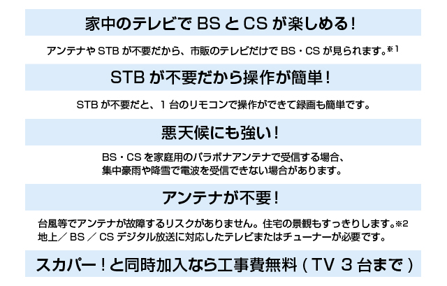 ※お客さまがスカパー!(有料チャンネル)をご契約されている場合、スカパー!のご利用料金はスカパーJSAT株式会社より請求します。